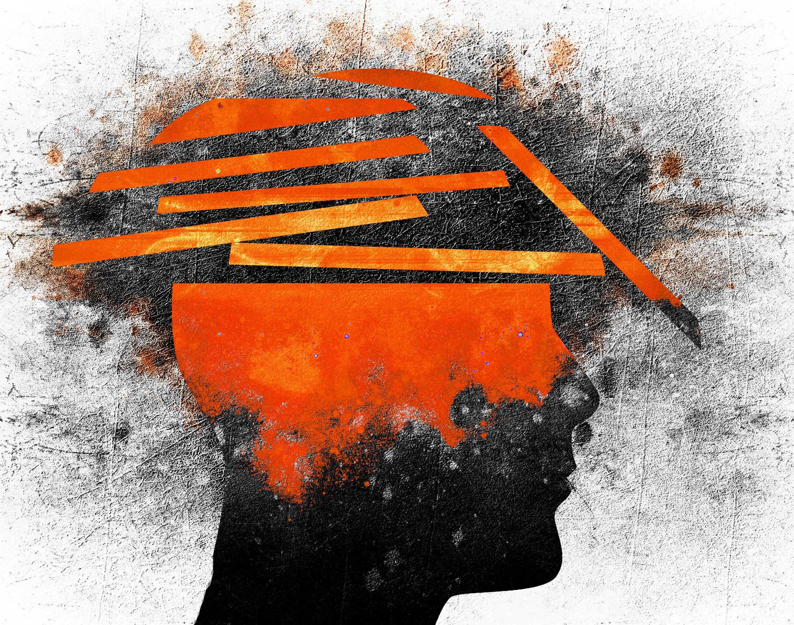 broken human head, conceptual digital illustration